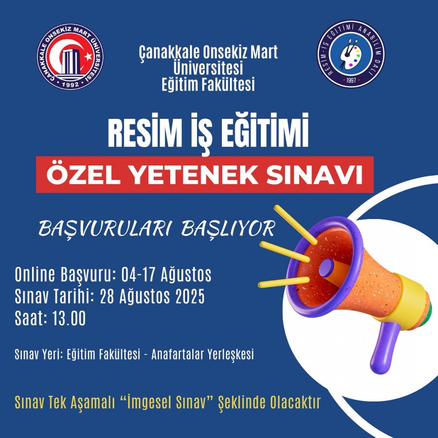 ***Özel Yetenek Sınavı 28 Ağustos saat 13.00’da Çanakkale Onsekiz Mart Üniversitesi Eğitim Fakültesi Anafartalar Yerleşkesi zemin katında bulunan dersliklerde yapılacaktır.